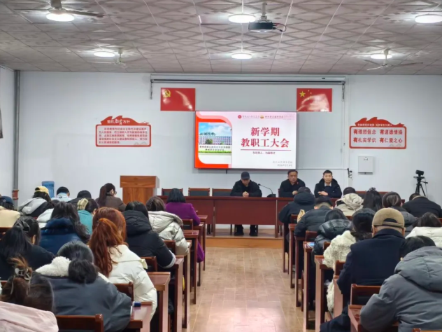 春风浩荡,万象更新。为确保学校新学期各项工作高起点谋划、高标准推进、高质量落实,3月4日上午,我校召开2025-2026学年度第二学期全体教职工大会。校长孙助伟、教学副校长袁万博、教务处主任李富军及全体教职工以饱满的热情共绘发展蓝图。孙校长及李主任分别就新学期学校整体工作及教学安排发表重要讲话。